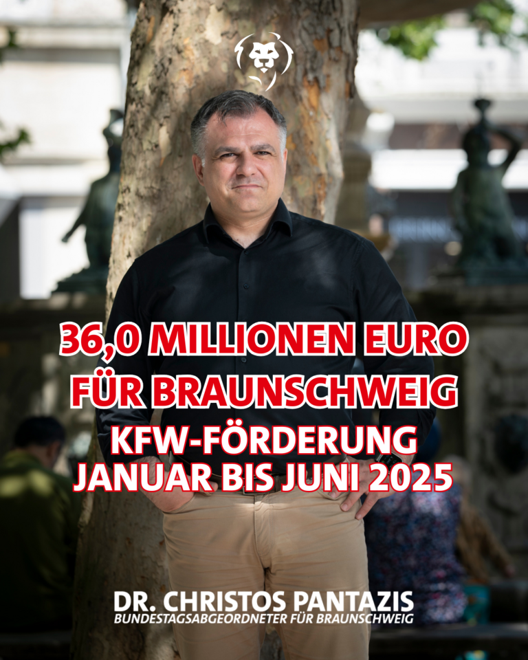 Dr. Christos Pantazis, Bundestagsabgeordneter für Braunschweig und gesundheitspolitischer Sprecher der SPD-Bundestagsfraktion, erklärt: „Die Zahlen zeigen: Die KfW-Förderung kommt bei uns in der Stadt an – bei Familien, bei Eigentümer:innen, beim Mittelstand. Das ist ein starkes Signal für Investitionen, Klimaschutz und sozialen Zusammenhalt.“